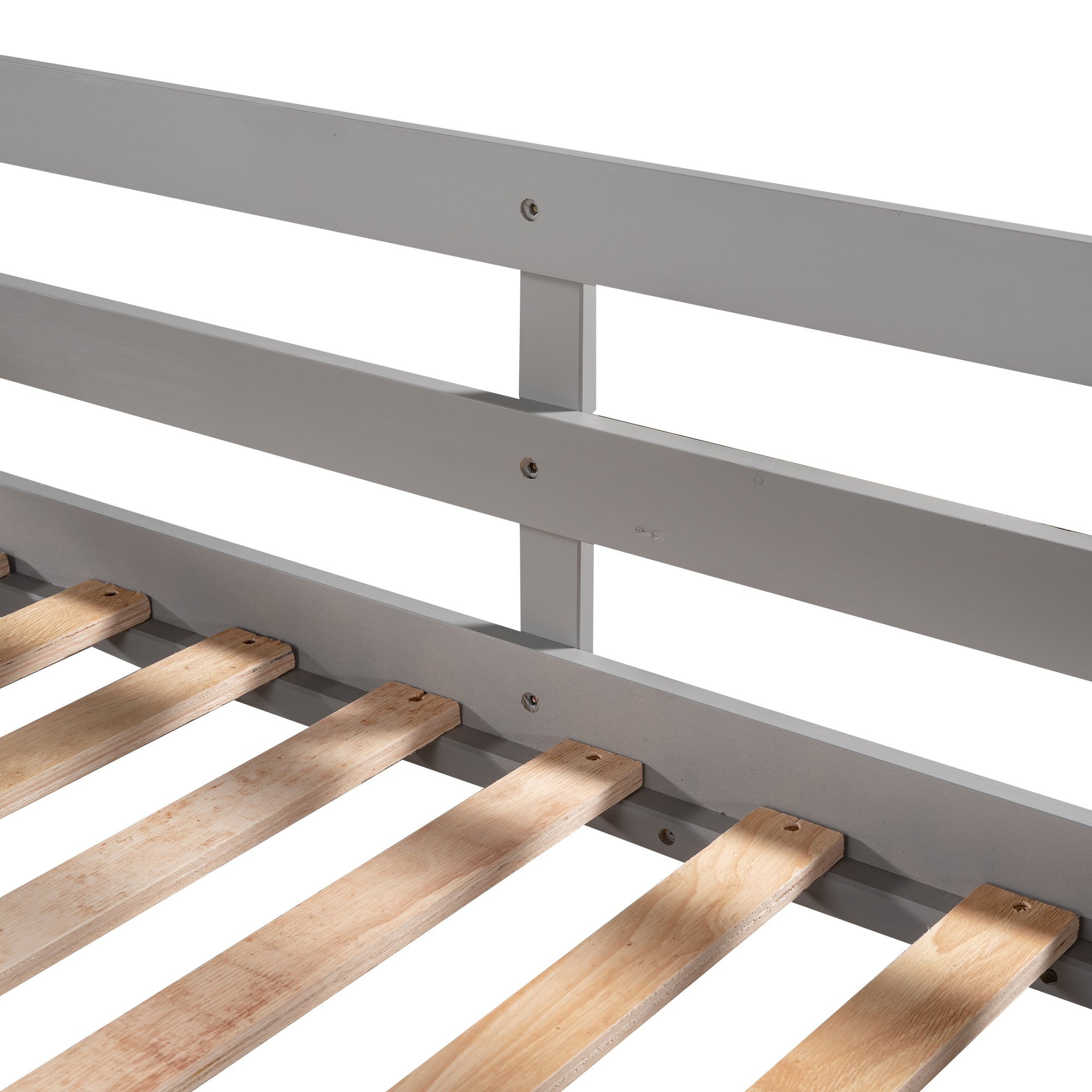3.[Safety Guaranteed] The upper bunk features a full-length guardrail, while the bottom bunk is designed to include both a headboard and footboard. This bunk bed ensures top-notch security for your kids. What’s more, the solid legs that made of solid pine wood can add strength and durability. Slat kit included so box springs are not required.